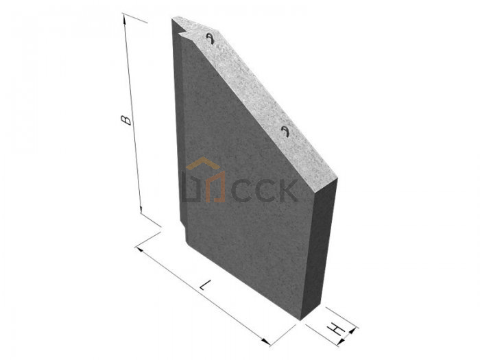 Откосные стенки (крылья) БЛ 41 лев/прав - железобетонные изделия специального назначения для укрепления обочин, насыпей и прочих дорожных сооружений. Это массивные элементы, которые обладают всеми свойствами высокой прочности, надежности и долговечности. Конструктивно крыло представляет собой железобетонную плиту со скошенным краем и креплением. Наклон верхней грани должен соответствовать наклону насыпи. Вертикальная грань имеет небольшой уступ для нормальной стыковки элемента с портальной стенкой. Монтируют два крыла на одну портальную стенку, образуя воронку, то есть откос выполняется в правом или левом исполнении (это отображается в маркировке изделия буквенной комбинацией). Таким образом, создается надежное укрепление, способное противостоять значительным статическим и динамическим нагрузкам, не разрушаясь.