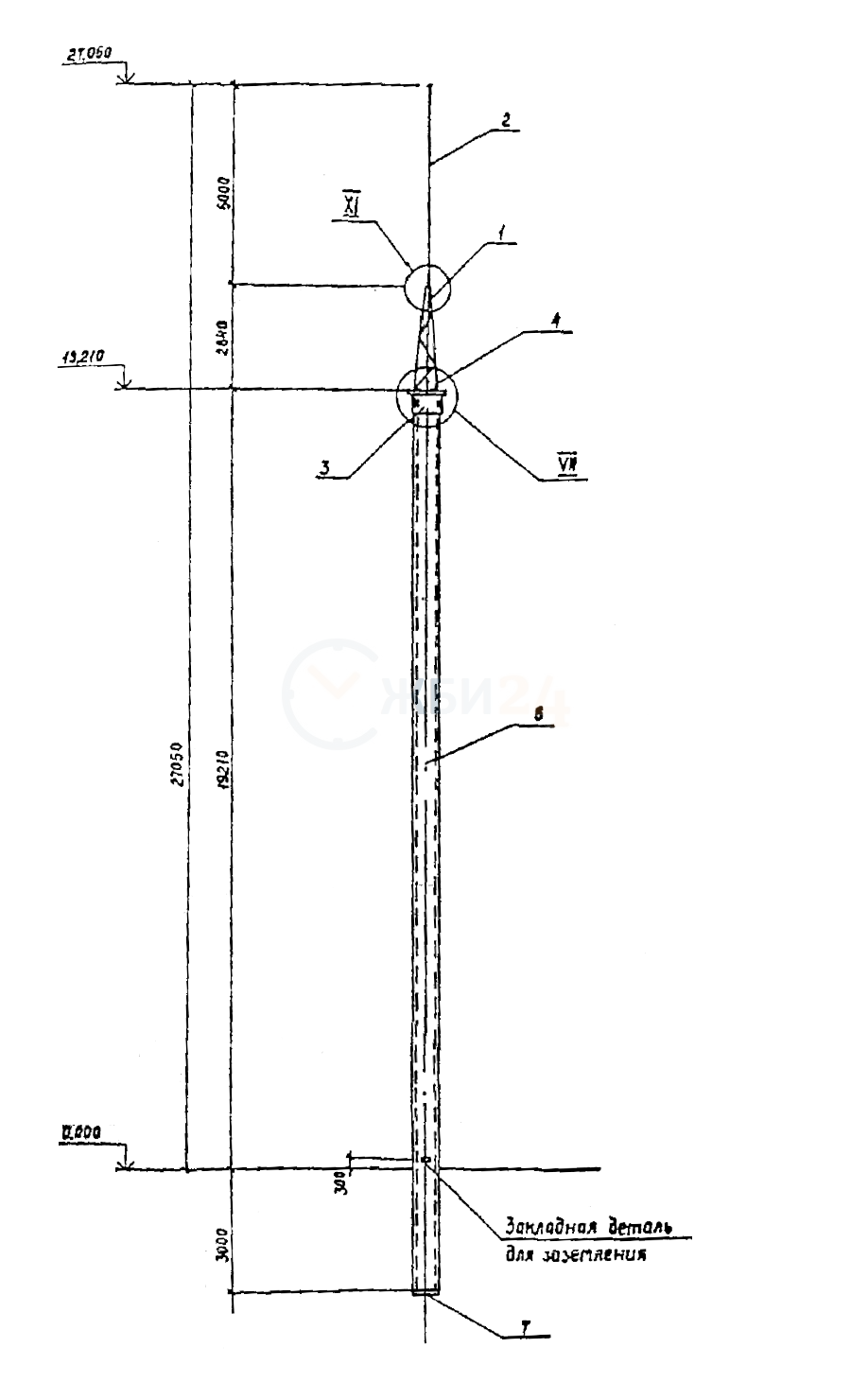 Молниеотвод железобетонный МЖ-27.1, изготавливается по серии 3.407.9-172 выпуск 1 (инв. №13255тм-Т1).