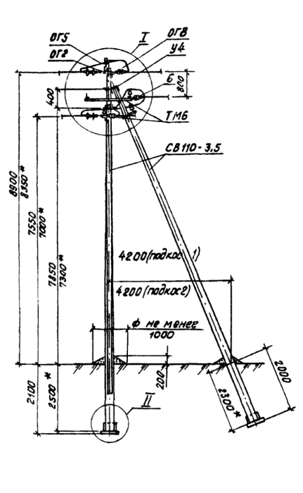 Опора закрепляется в грунте, путём погружения нижних частей стоек опоры в пробуренные котлованы на глубину 2,1 (2.5) м.