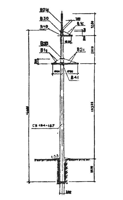 Промежуточная бетонная опора ПБ35-3В изготавливается по серии 3.407.1-163 выпуск 1.