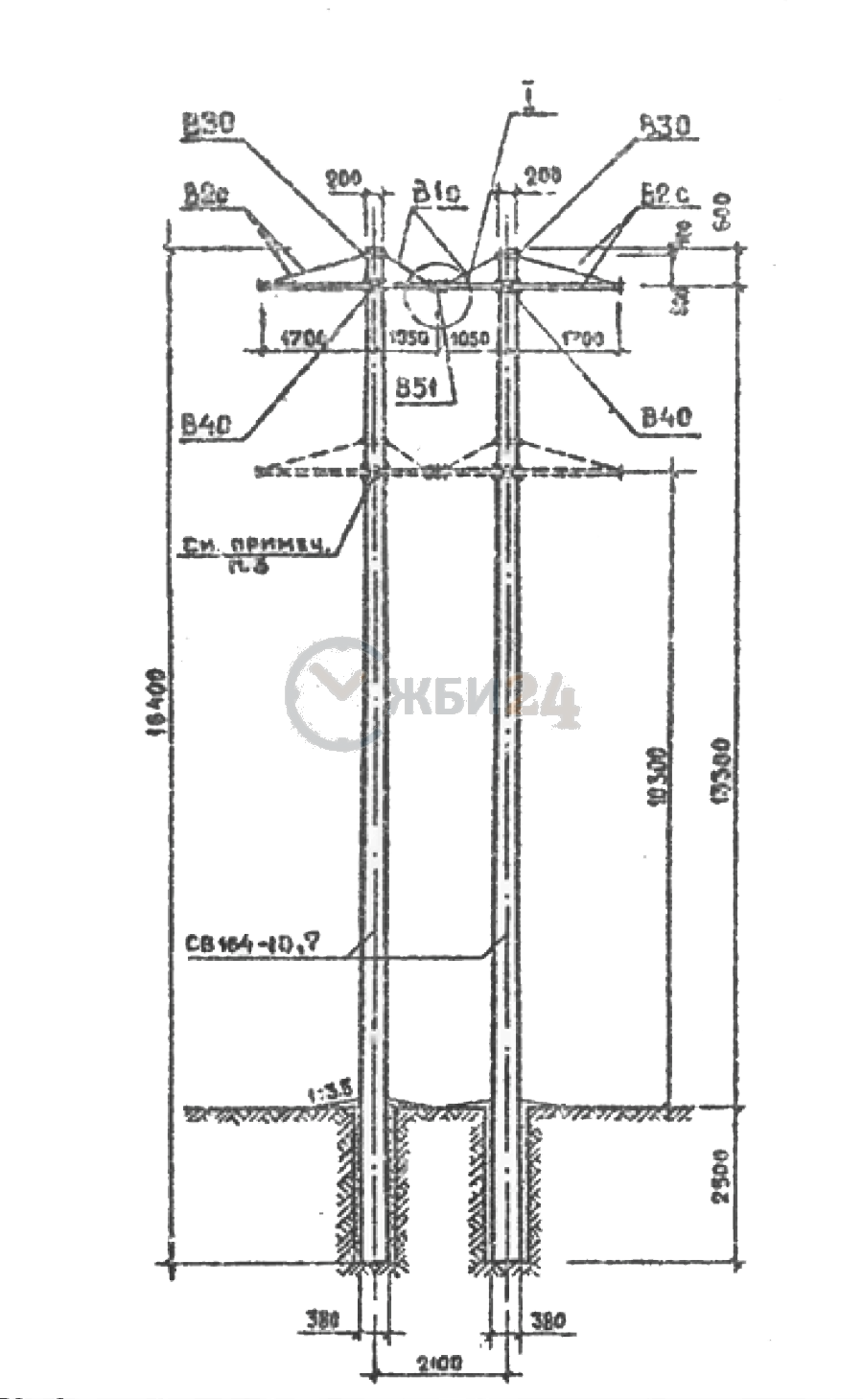 Промежуточная специальная бетонная опора ПСБ35–1В, серия 3.407.1–163 выпуск 1